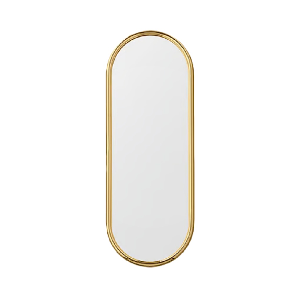 Espejo ovalado vertical tipo cápsula con marco metálico dorado (47 × 16 in)